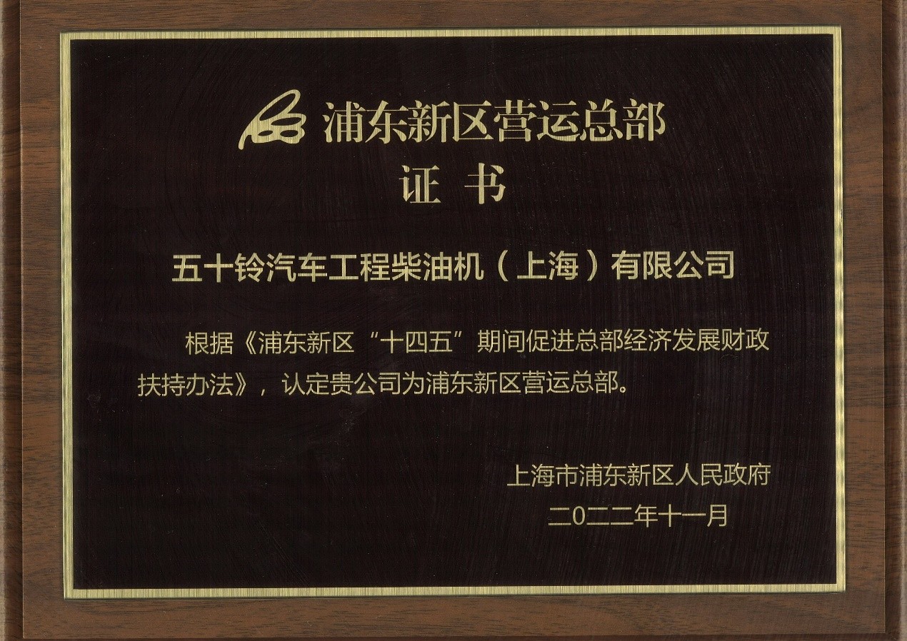 經(jīng)過層層考核和篩選,五十鈴汽車工程柴油機(jī)(上海)有限公司有幸在本次大會中被認(rèn)定為浦東新區(qū)營運(yùn)總部。這無疑是浦東新區(qū)政府對五十鈴的高度信任和認(rèn)可的體現(xiàn)。我司總經(jīng)理安平英明當(dāng)日參加頒獎儀式,代表我司取得了認(rèn)定證書。
